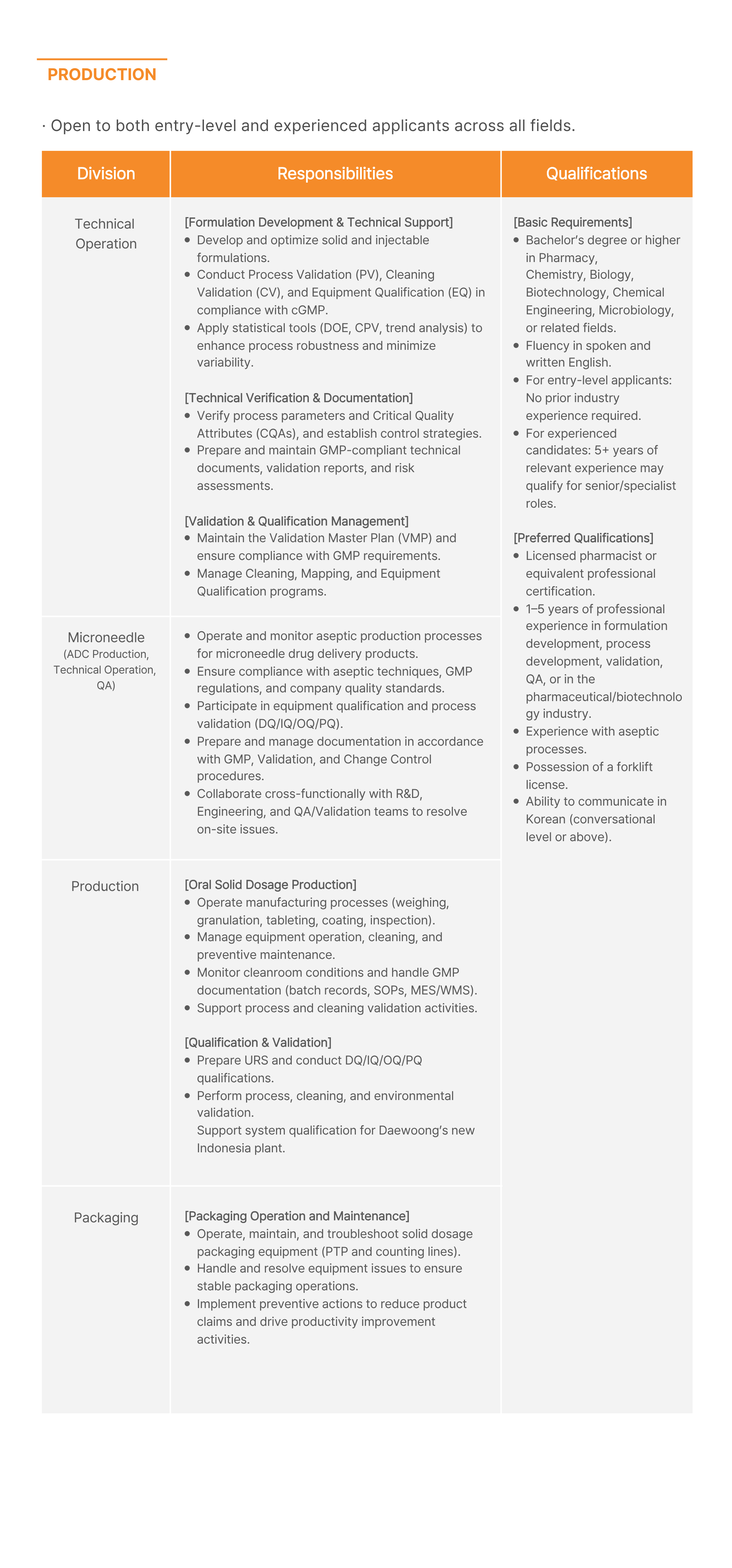 [Experienced] Production